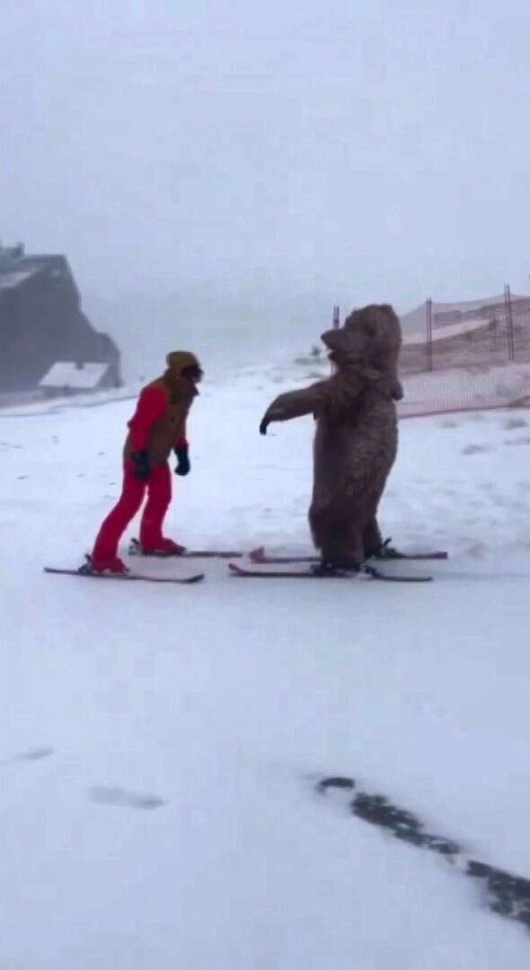Sezonun açılışını kutlayan iki vatandaş ayı ve penguen kostümü giyerek kayak yaptı. O anlar çevredeki vatandaşların kameralarına yansıyarak renkli görüntüler oluşturdu.
