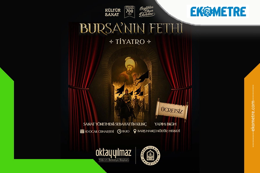 Yıldırım Belediyesi Kültür ve Sosyal İşler Müdürlüğü tarafından düzenlenen bir diğer etkinlik ise ‘Bursa’nın Fethi’ tiyatro oyunu olacak. Oyun, fetihte önemli bir rol oynayan Balaban Bey’in şahitlik ve anlatımlarıyla, Bursa’nın fethi sürecinde yaşananları sahneye taşıyacak. Sanat yönetmenliği Sebahattin Kılıç’ın yaptığı ve BKGM oyuncularının rol aldığı oyun, Barış Manço Kültür Merkezi’nde, 10 Ocak Cumartesi günü saat 19.30’da sahnelenecek.
