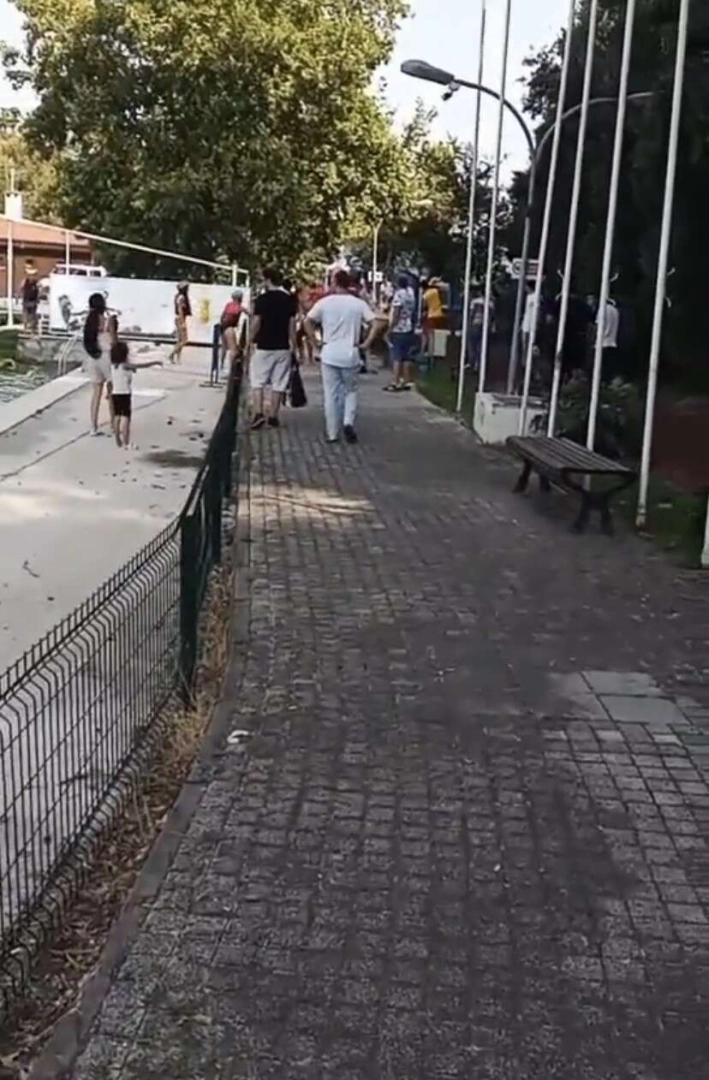 Olay, merkez Osmangazi ilçesi Çukurca Mahallesi’ndeki Sukaypark tesislerinde meydana geldi. İddiaya göre, kimliği öğrenilemeyen 2 kişi, su kayağı yapan kadınların fotoğrafını çekerken yakalandı. Bunun üzerine toplanan kalabalık grup, kadınların fotoğrafını çektiği öne sürülen kişileri dövdü. Taraflar birbirinden şikayetçi olunca devreye polis ekipleri girdi. O anlar, cep telefon kamerasına yansıdı.