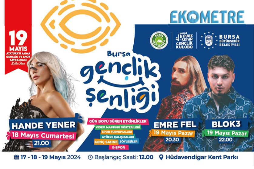 Bursa Büyükşehir Belediyesi tarafından hazırlanan birbirinden farklı etkinliklerle, 19 Mayıs Atatürk’ü Anma, Gençlik ve Spor Bayramı bu yıl da coşkuyla kutlanacak. Spor müsabakalarından atölyelere kadar üç gün boyunca sürecek olan kutlamalarda, Hande Yener, Emre Fel ve Blok3 gibi ünlü isimler Bursalılar için sahne alacak. 19 Mayıs Atatürk’ü Anma, Gençlik ve Spor Bayramı, Bursa’da birbirinden renkli etkinliklerle kutlanacak. Büyükşehir Belediyesi koordinasyonunda hazırlanan programlar, Hüdavendigar Mihraplı Kent Parkı’nda gençlere unutulmaz bir bayram yaşatacak. Kutlamalar, 17 Mayıs Cuma günü Tophane’den Kent Meydanı’na doğru yapılacak koşu ve bisiklet kortejiyle start alacak. Bursa Büyükşehir Belediye Başkanı Mustafa Bozbey ile Heykel Meydanı’nda buluşma programının yapılacağı program, Atış Yapı Downtown Yeşil Bursa Rallisi seramonik startıyla devam edecek. Aynı gün saat 18.00 ile 23.00 arasında Mihraplı Parkı’nda ise birbirinden renkli etkinlikler yapılacak. Hande Yener-Emre Fel-Blok3 konseri 18 Mayıs Cumartesi günü ve 19 Mayıs Pazar günü ise Balat Ormanı Paintball alanı, Atatürk Kent Ormanı dağ kızağı aktivitesi ve Mihraplı Parkı’ndaki etkinliklerle 19 Mayıs coşkusu devam edecek. Mihraplı Parkı’ndaki alanda, Atatürk ve 19 Mayıs sergisi, skatepark, tenis, mini futbol, basketbol 3x3 turnuvası, tırmanma duvarı, kano yarışması, ‘gülümse çekiyorum’ fotoğraf alanı, karaoke alanı, açık hava sineması, Redbull F1 similasyonu, Redbull oyun çadırları, su perdesi mappıng, 50 adet gençlik standı, e-spor alanı, retro oyun alanı, gülümseyen sahne, grafiti alanı, fikir duvarı, 360 fotoğraf alanı, bayrak dağıtım noktası, dart turnuvası, 3d kalem, model maket yapımı, teleskop gözlemi, led anahtar atölyesi, VR gözlük atölyesi, 3D printer deneyimleme, ahşap atölyesi, sumo güreşi oyunu, canlı langırt, zıpla yapış, dev jenga, slot car araba yarışı, mini masa tenisi, bileklik atölyesi, karikatür atölyesi ve karizma basketbol show gibi birçok etkinlik alanı yer alacak. Cumartesi günü Saat 21.00’da ünlü şarkıcı Hande Yener’in, Pazar günü ise Saat 20.30’da ünlü isim Emre Fel’in, Saat 22.00’da Blok3’ün Hüdavendigar Mihraplı Kent Parkı’nda sahne almasıyla coşku doruğa çıkacak. Bursa Büyükşehir Belediye Başkanı Mustafa Bozbey, tüm gençlerin 19 Mayıs Atatürk’ü Anma Gençlik ve Spor Bayramı’nı tebrik ederek, tüm Bursalıları 3 gün boyunca sürecek olan kutlamalara davet etti.