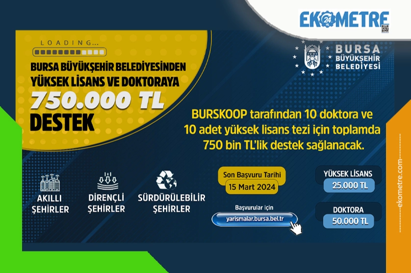Bursa Büyükşehir Belediyesi tarafından ‘Akıllı şehirler, dirençli şehirler ve sürdürülebilir şehirler’ temasıyla bilimsel çalışmalara destek olmak amacıyla ‘Lisansüstü Tez Destek Programı’ düzenlendi. Yüksek lisans ve doktora düzeyindeki çalışmaları desteklemek amacıyla toplam 750.000 TL’lik kaynağın ayrıldığı programa, Bursa’da eğitim gören veya şehre katkı sağlayacak projeler üreten birçok öğrenci başvuruda bulundu. Destek programıyla, doğal kaynakları koruyan, sürdürülebilir ve yenilikçi çözümler geliştiren projeler üretilmesi, bilimsel çalışmalarla Bursa’nın geleceğine yön verilmesi hedeflendi. Tez çalışmalarını Bursa ölçeğinde gerçekleştiren yüksek lisans ve doktora öğrencileri, kentin sorunlarına yönelik bilimsel, yenilikçi ve uygulanabilir çözümler getirmek için çalışmalar yürüttü. Büyükşehir Belediyesi tarafından kentin ihtiyaçlarına yönelik özgün ve yenilikçi çözümler üretilmesine katkı sağlamak amacıyla hazırlanan ‘Lisansüstü Tez Destek Programı’ndan destek almaya hak kazananlar da belirlendi. Program kapsamında destek almaya hak kazanan araştırmacıların listesine https://yarismalar.bursa.bel.tr adresinden ulaşılabilir.