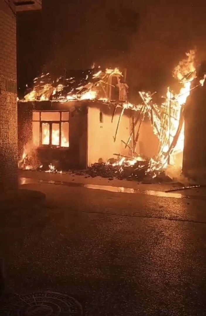 Müstakil evin alev alev yanma anı ise cep telefon kameralarına yansıdı.