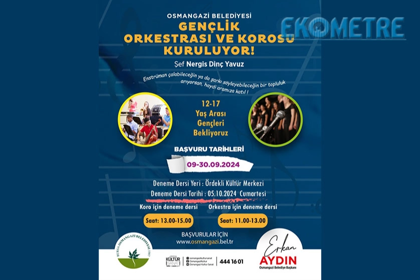 05 Kasım 2024 tarihinde Ördekli Kültür Merkezi’nde yapılacak olan deneme derslerinin ardından Gençlik Orkestrası ve Korosu’na girmeye hak kazanan genç müzisyenler, Şef Nergis Dinç Yavuz tarafından eğitim görecek. Koro ve orkestra üyeleri, verilen eğitim ve çalışmaların ardından Osmangazi Belediyesi etkinliklerinde sahne alarak sanatlarını sergileme şansına kavuşacak.