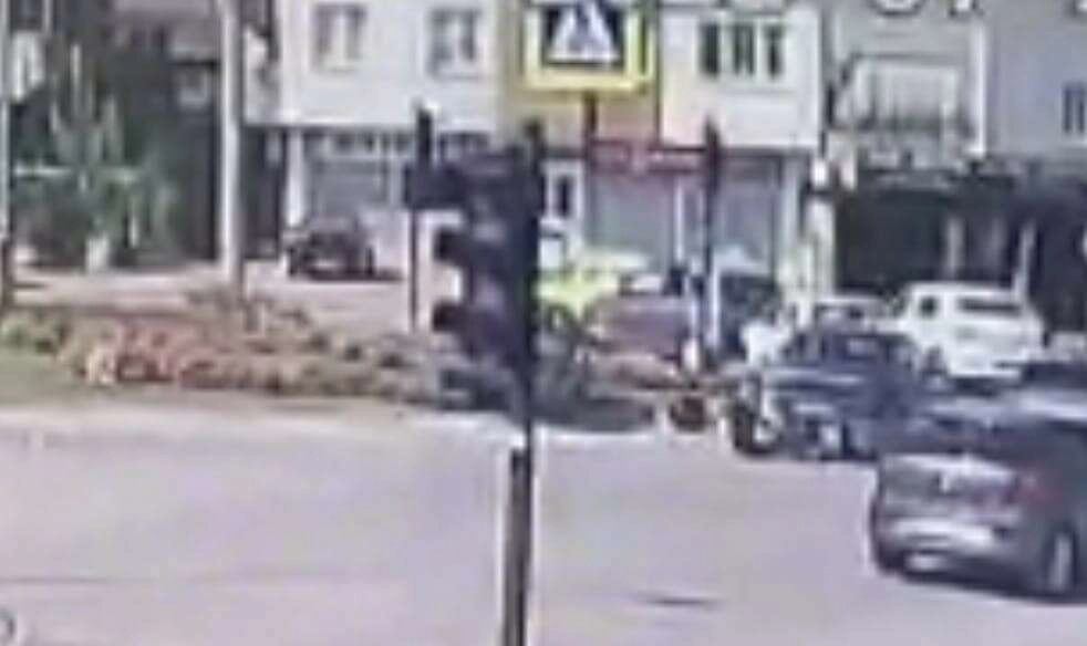 Kaza anı bir işyerinin güvenlik kameralarına saniye saniye yansırken, polis kazayla ilgili inceleme başlattı.