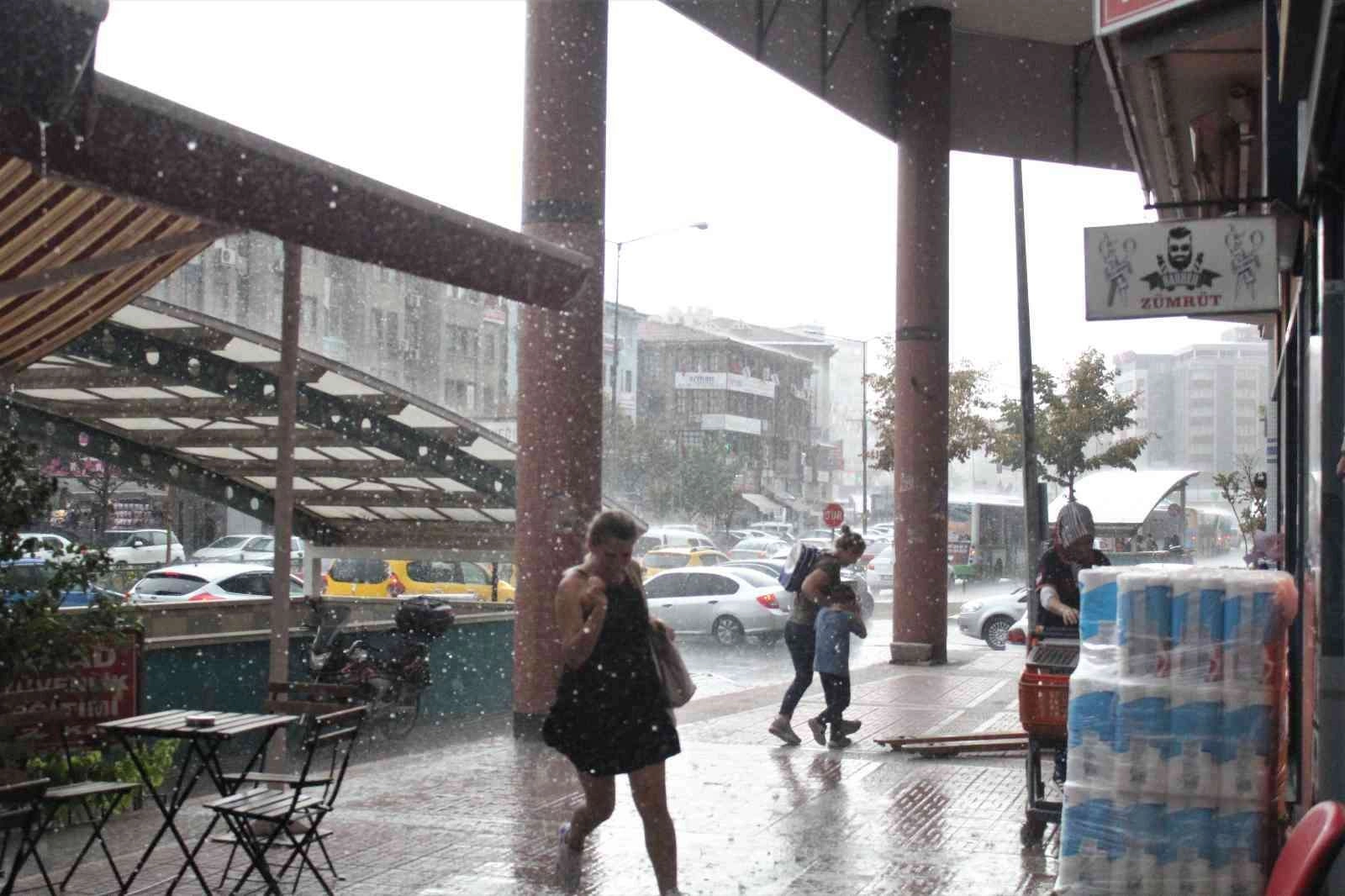 Öte yandan şiddetli yağış Keles ilçesinde doluya dönüştü.