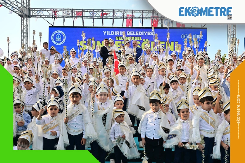 Çocuklar için, Yıldırım Belediyesi ve Mercedes Benz Team 16 Derneği iş birliğinde klasik araçlardan oluşan sünnet konvoyu ile başlayan şölen, Kuran’ı Kerim tilaveti, mehter takımı konseri, Hacivat ve Karagöz gösterisi gibi etkinlikler ile devam etti. Sünnetin dini bir vecibe olmasının yanı sıra çocukların hayatındaki önemli hatıralarından birisini teşkil ettiğini aktaran Yıldırım Belediye Başkanı Oktay Yılmaz, “Yavrularımızın bugününü daha güzel bir hale dönüştürmek için geleneksel hale getirdiğimiz Sünnet Şenliğimiz kapsamında 600 çocuğumuzu, şehrimizin önemli sağlık kuruluşlarından Özel Medicabil Yıldırım Hastanesi'nde modern sağlık koşulları altında uzman ekipler tarafından güvenli bir şekilde sünnet ettirdik. Şimdi ise onların mutluluklarına ortak olmak için buradayız. Biliyoruz ki; çocuklarımız yalnızca bu ilçenin değil, bu şehrin yarınları, bu milletin umutlarıdır. Bugün burada yavrularımızın hafızalarında unutulmaz bir hatıra bırakmak istiyoruz. Sünnet kıyafetlerinden hediyelere, ikramlardan eğlencelere kadar her detay, onların bu özel günü en güzel şekilde yaşamaları ve hatırlamaları için hazırlandı. Ayrıca sevgili çocuklar, sizler, peygamber efendimiz’in sünnetini yerine getiriyorsunuz. Sizleri tebrik ediyor, sağlık, huzur ve başarı dolu bir ömür diliyorum” diye konuştu.