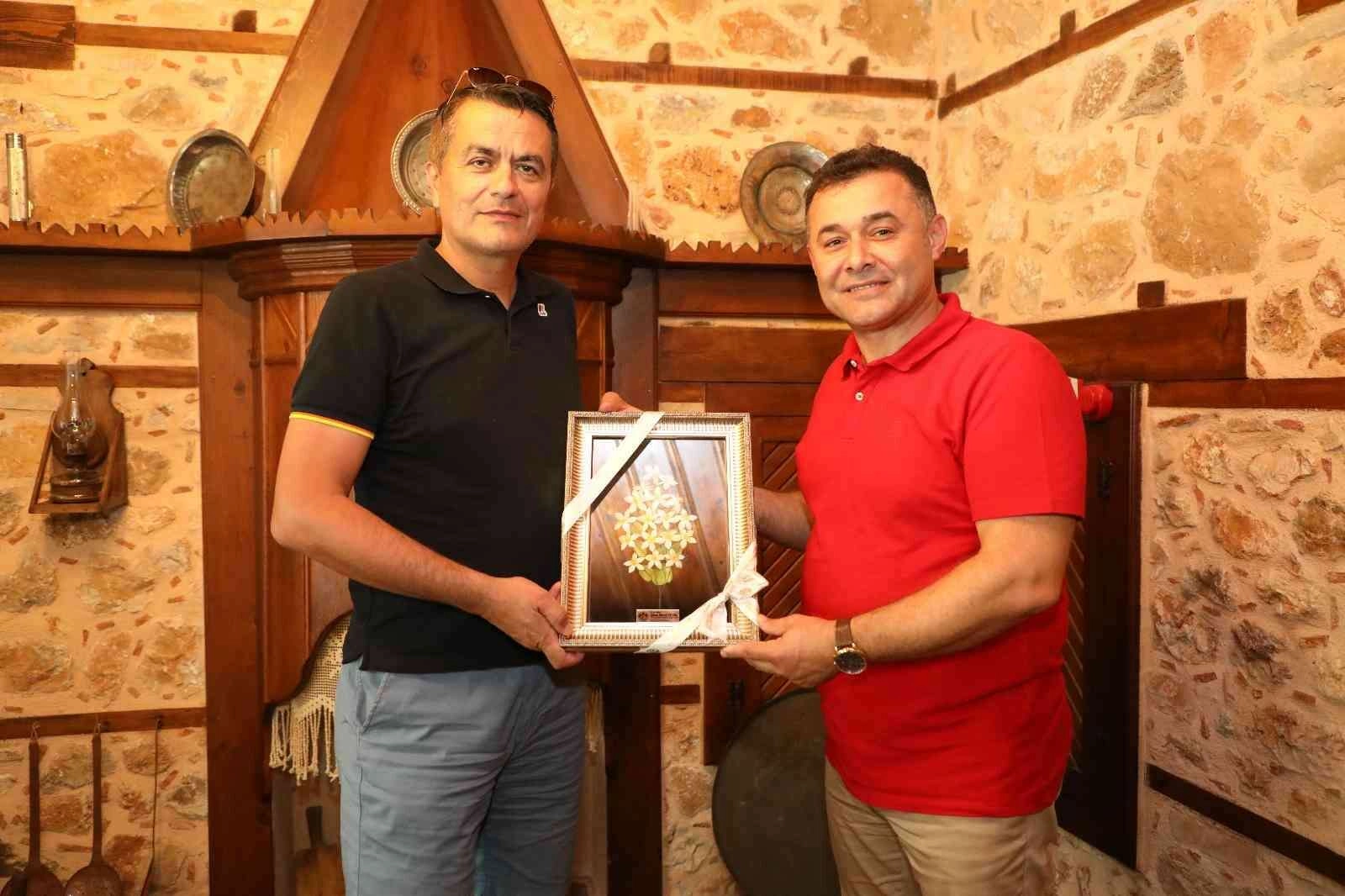 Toplantının ardından Atılay Uslu ve ekibine Alanya’nın tarihi ve kültürel noktalarını gezdiren Başkan Yücel, ekibe ipek kozasından tablo, Alanya’nın silueti ve Sevgi Hep Vardı temalı “Sevgi Taşı” hediye etti.