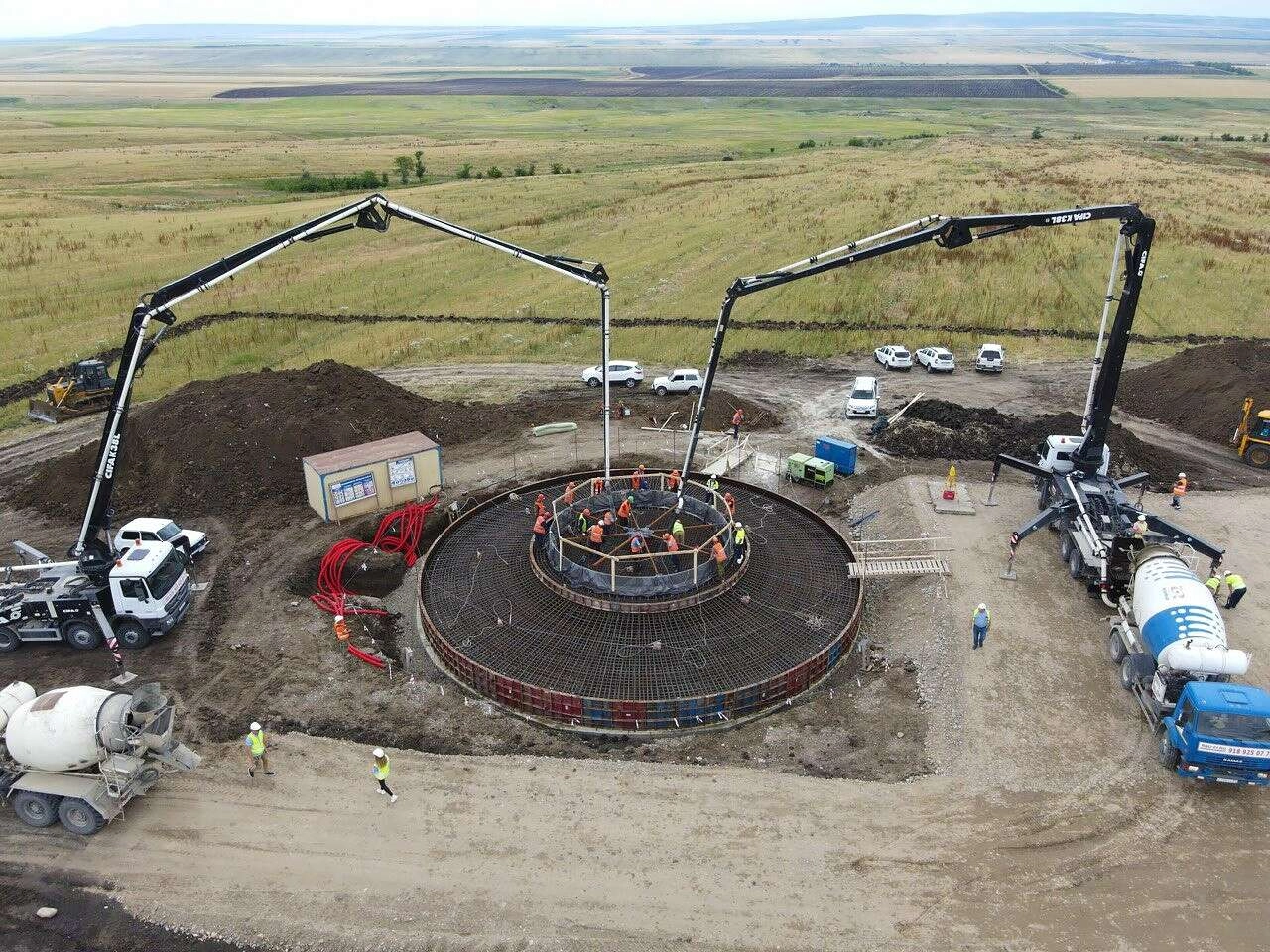 100’den fazla inşaat makinesinin gönderildiği inşa sahasında 250’den fazla işçi ve mühendis görev yapıyor. Rüzgar türbinlerinin temelleri için yerinde dökme kazık ve betonarme demiri dikme çalışmaları devam ediyor. İşçiler, ayrıca rüzgar türbini temellerine ve şebeke trafosuna vinç platformları ve ulaşım yolları inşa ediyor. Sahada saatte 230 metreküp hazır beton üretebilen iki beton karıştırma tesisi faaliyet gösteriyor.