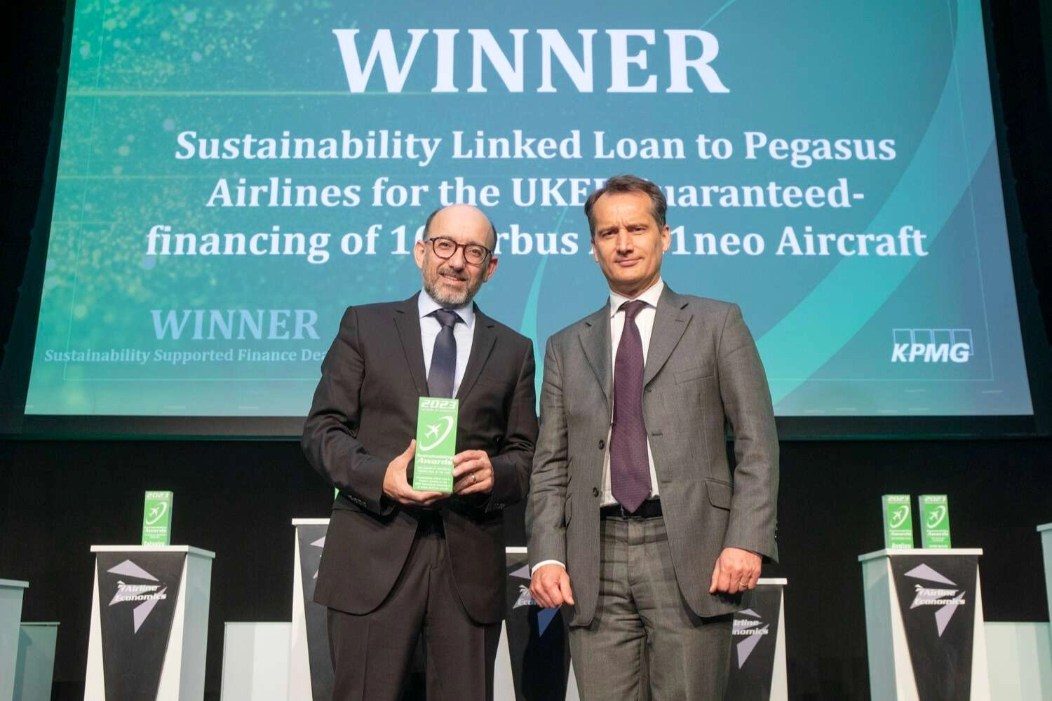 Pegasus Hava Yolları; 10 adet yeni Airbus A321neo uçağının UK Export Finance destekli finansmanı için gerçekleştirdiği, dünyanın ilk Sürdürülebilirlik Bağlantılı Kredisi işlemiyle yurt dışından iki ödüle birden layık görüldü.