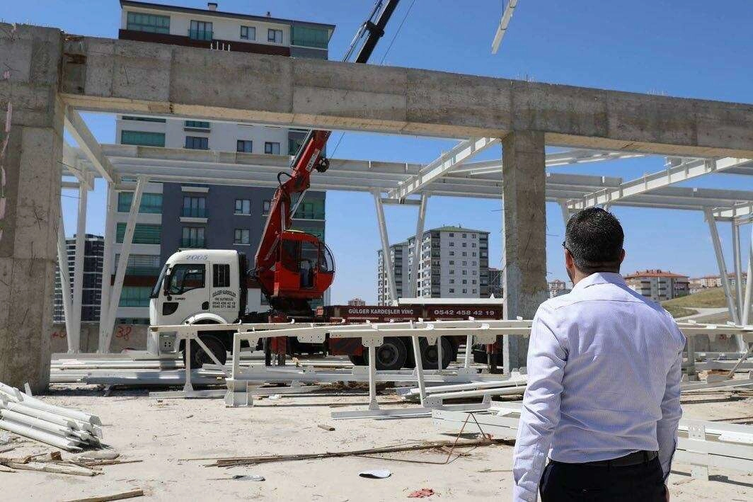 Mimar Sinan Mahallesi’nde ilçeye yeni bir kimlik kazandırarak, vatandaşların birçok ihtiyacını tek bir çatı altında birleştirmeyi planlayan Pursaklar Belediyesi, Ticaret Merkezi ve Modern Pazar Alanı’ndaki çalışmalarını hızla sürdürüyor. İlçe genelinde devam eden tüm projelerin ilerleme aşamalarını titizlikle takip eden Pursaklar Belediye Başkanı Ertuğrul Çetin, inşaat alanında incelemelerde bulunarak, gelinen son nokta hakkında ekiplerden bilgi aldı.