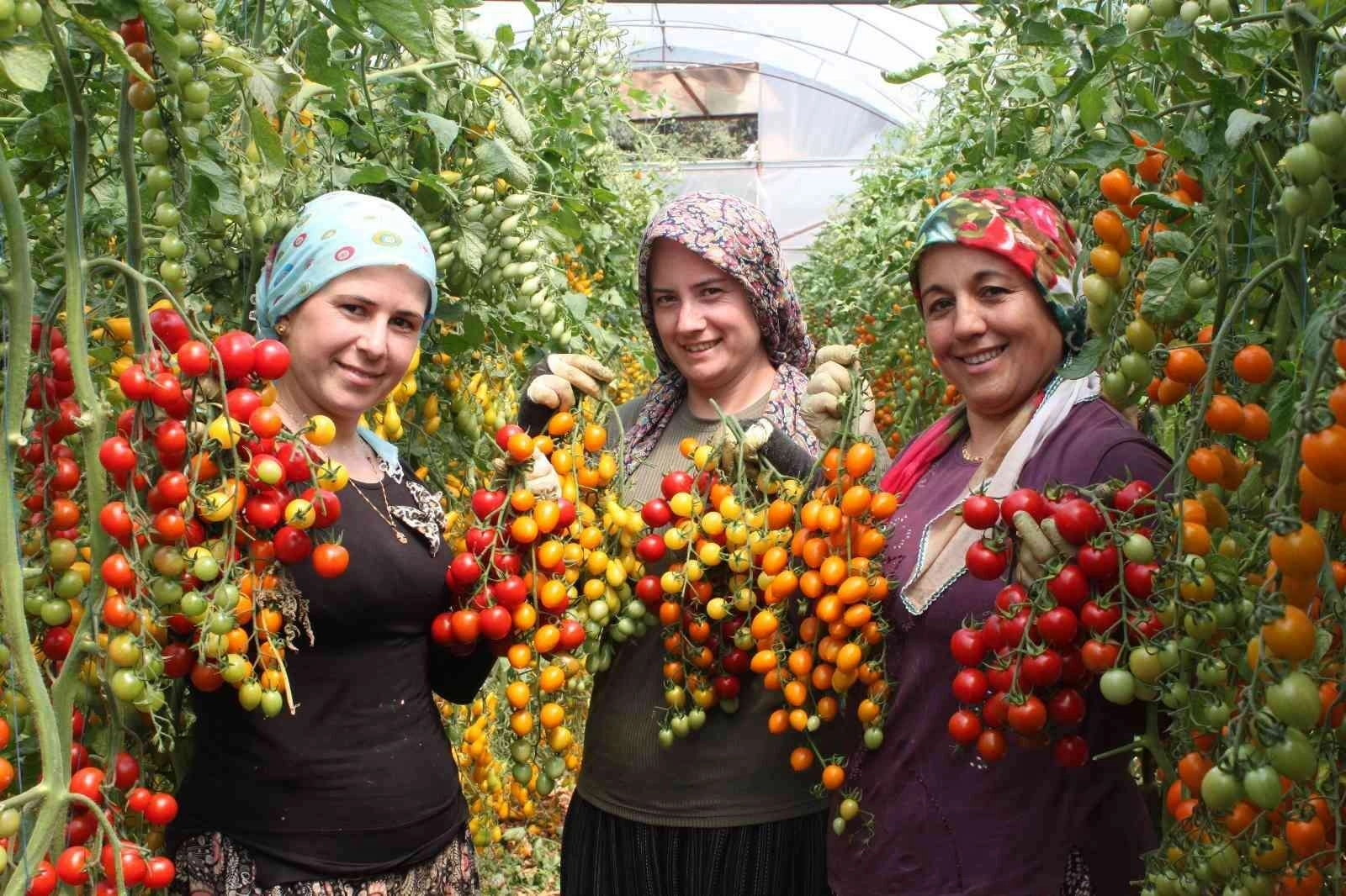 Eşiyle birlikte domates üretimi yaptıklarını anlatan Kadriye Gezer, 8 çeşit domates yetiştirdiklerini ve her birinin aromasıyla tadının farklı olduğunu belirterek güzel bir gelir sağladıklarını söyledi.