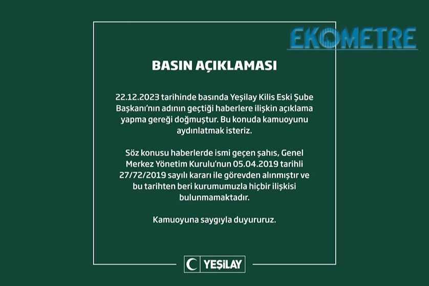 Yeşilay, Kilis Eski Şube Başkanı’nın adının geçtiği haberlere ilişkin açıklama yapma gereği duydu