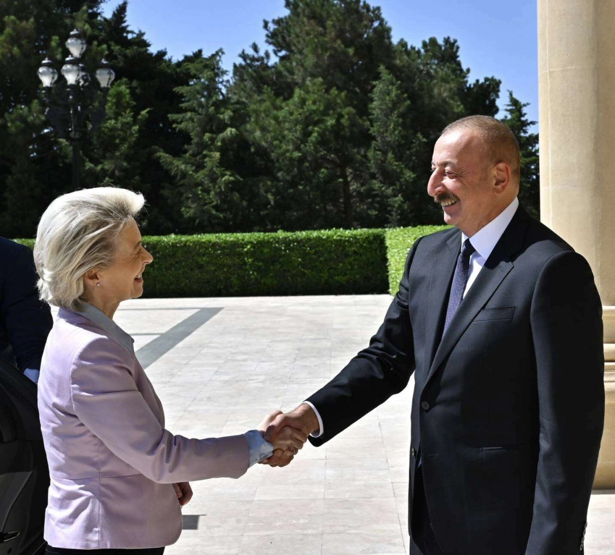 Resmi temaslarda bulunmak üzere Azerbaycan’ın başkenti Bakü’ye gelen Avrupa Birliği (AB) Komisyonu Başkanı Ursula von der Leyen, temaslarına başladı. Azerbaycan Cumhurbaşkanlığı’ndan yapılan açıklamada, Azerbaycan Cumhurbaşkanı İlham Aliyev’in AB Komisyonu Başkanı Ursula von der Leyen başkanlığında heyeti kabul ettiği belirtildi.