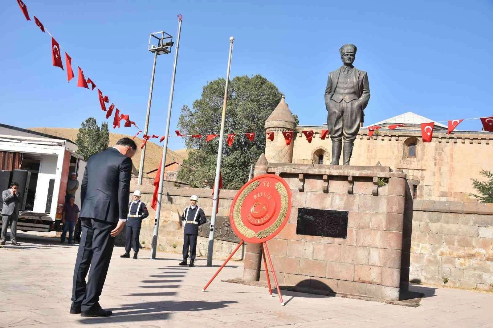 Bitlis Valisi Oktay Çağatay ve Bitlis Belediye Başkanı Nesrullah Tanğlay Atatürk heykeline çelenk bırakmasıyla başlayan tören, saygı duruşu ve İstiklal Marşı’nın okunmasıyla devam etti. Günün anlam ve önemini belirten konuşmanın yapılmasının ardından Bitlis Valisi Oktay Çağatay makamında tebrikleri kabul etti.