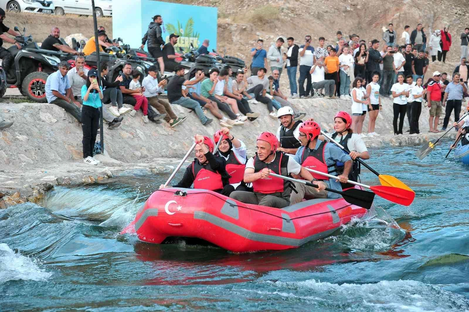 Cumhurbaşkanı Yardımcısı Fuat Oktay ve Tarım ve Orman Bakanı Vahit Kirişci, açılışını yaptıkları parkurda rafting yaparak Türkiye Rafting Federasyonu Başkanı Fikret Yardımcı’dan parkur hakkında bilgi aldı.