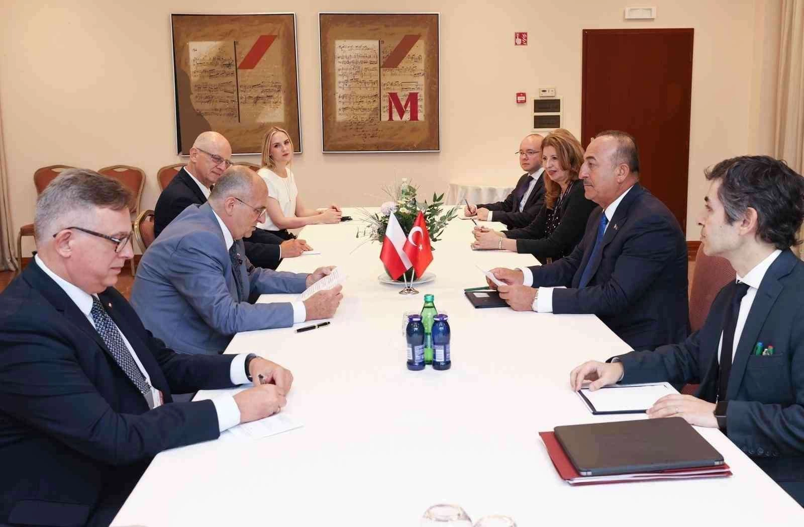 Dışişleri Bakanı Mevlüt Çavuşoğlu, “Gücün hakimiyeti mi kuralların gücü mü” temalı 17. Bled Stratejik Forumu’na katılmak üzere geldiği Slovenya’da resmi temaslarını sürdürüyor. Bakan Çavuşoğlu, Polonya Dışişleri Bakanı Zbigniew Rau ile bir araya gelerek, “Bled Stratejik Forumu marjındaki son görüşmemizi Polonya Dışişleri Bakanı Rau’yla yaptık. İkili ilişkilerimizi ve Ukrayna’daki durumu ele aldık” dedi.