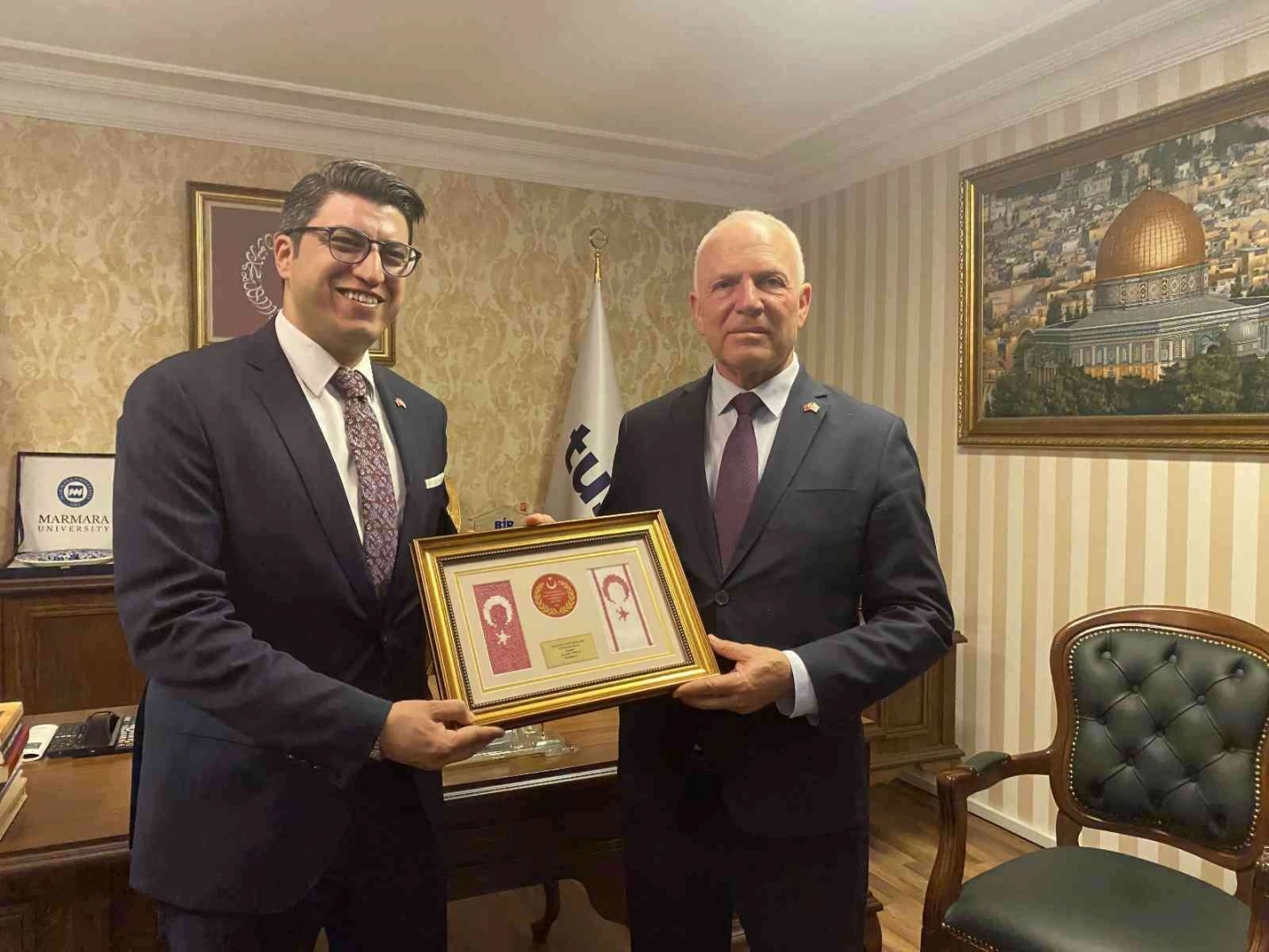 Öte yandan, KKTC Cumhuriyet Meclisi Başkanı Zorlu Töre, TUSİM Genel Başkanı Mustafa Kazım Alpay’a Türk ve Kıbrıs Bayrağı işlemeli plaket taktim etti. Program toplu fotoğraf çekimi ile son buldu.