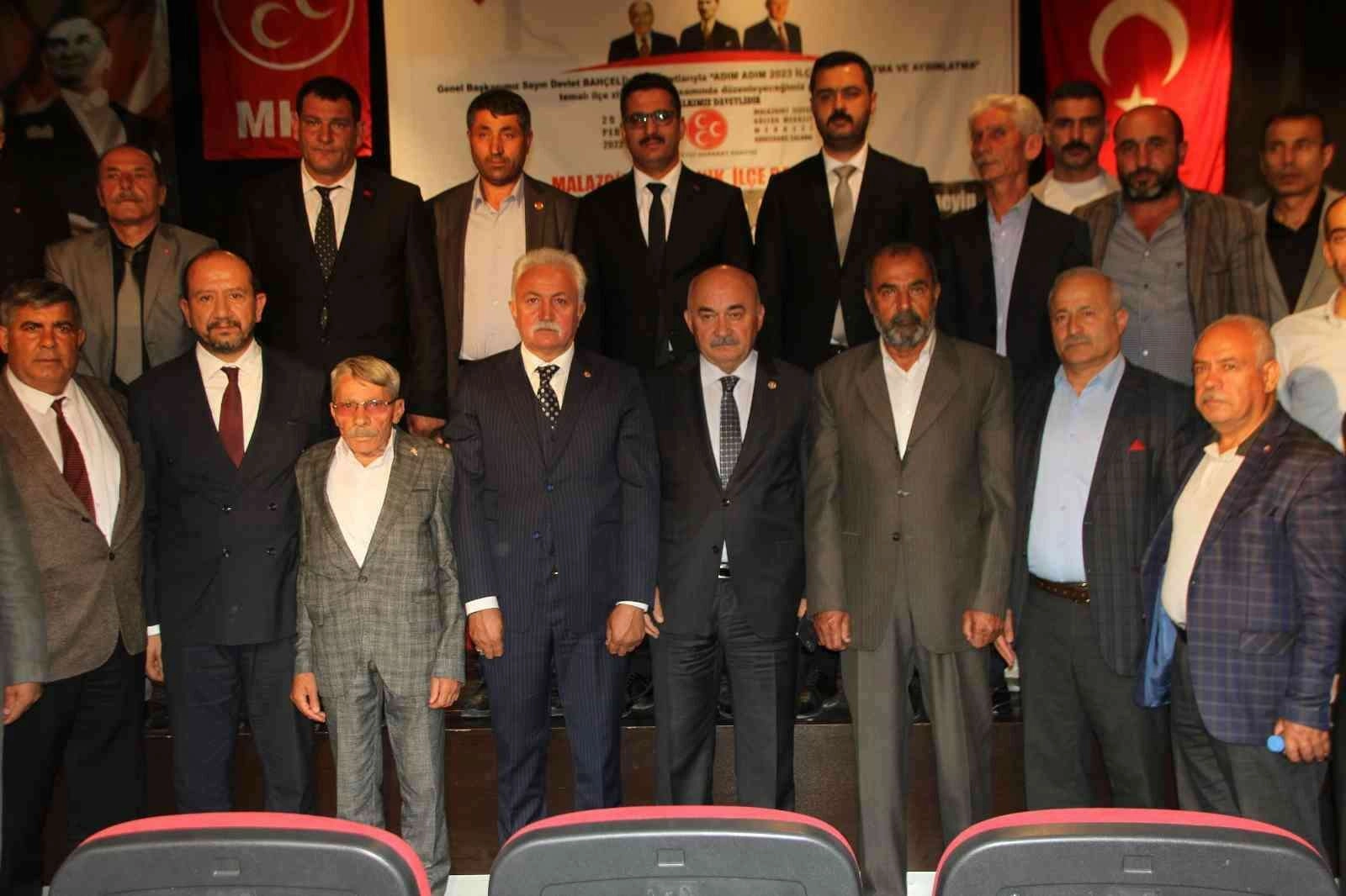 "2023’e Doğru, Aday Belli, Karar Net" sloganıyla gerçekleştirilen Adım Adım 2023 İlçe İlçe Anlatma ve Aydınlatma toplantısına, Milliyetçi Hareket Partisi Bursa Milletvekili Mustafa Hidayet Vahapoğlu, MYK üyeleri Kadir Şekerci ve Muhammed Köse, Milliyetçi Hareket Partisi Muş İl Başkanı Osman Yüce, MHP Malazgirt İlçe Başkanı Haluk Zeki Öğreten, AK Parti Malazgirt İlçe Başkanı Kenan Deniz, sivil toplum kuruluş başkanları ve çok sayıda parti üyeleri ve vatandaşlar katıldı.