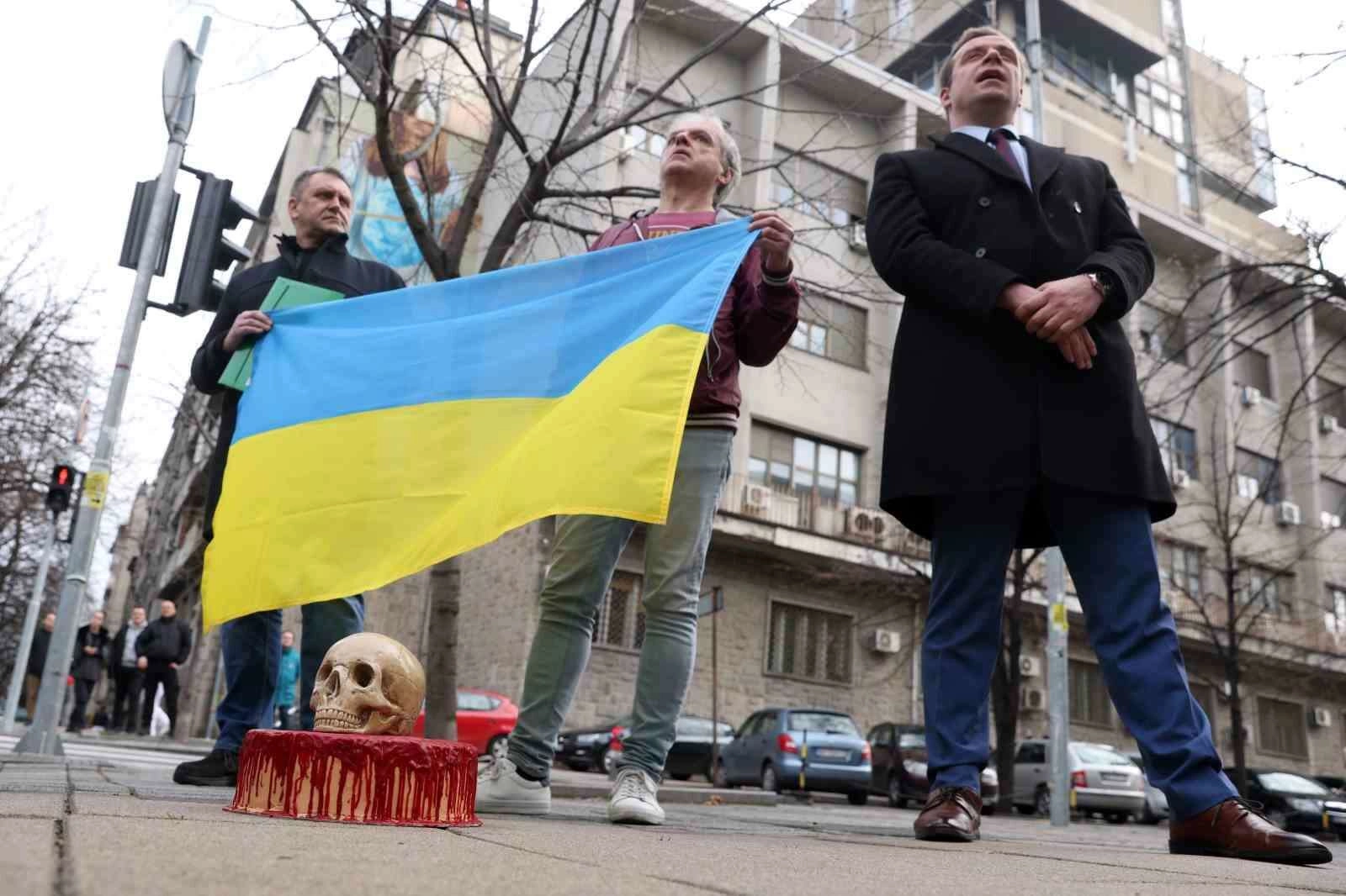 Rusya-Ukrayna savaşının birinci yıl dönümünde Avrupa’da eylemler gerçekleştiriliyor. Sırbistan’ın başkenti Belgrad’da Ukrayna yanlısı aktivistler, Rus Büyükelçiliğinin önüne üzerinde kanı simgeleyen kırmızı boya ve kuru kafa maketi bulunan “ölüm pastası” getirdi. Bölgede güvenlik önlemi alan polis, aktivistlerin pastayı elçilik önüne bırakmasına izin vermedi. Bunun üzerine aktivistler, pastayı büyükelçiliğe yakın bir yere bıraktı. Aktivistler ayrıca Rusya Devlet Başkanı Vladimir Putin’in “Ukrayna’da işlenen soykırım” nedeniyle Lahey’deki Uluslararası Ceza Mahkemesi’ne teslim olmasının talep edildiği bir dilekçeyi büyükelçiliğe vermek istedi. Aktivist Cedomir Stojkovic sosyal medya hesabından yaptığı paylaşımda, "Bugün Sırbistan’da Rusya büyükelçisine ’ölüm pastası’ getirdik ve Ukrayna’da işlediği soykırım suçundan Vladimir Putin’in teslim olması için talepte bulunduk. Biliyoruz ki sevdikleri şey ölüm, bu pasta onların politikalarının bir simgesi" ifadelerini kullandı.