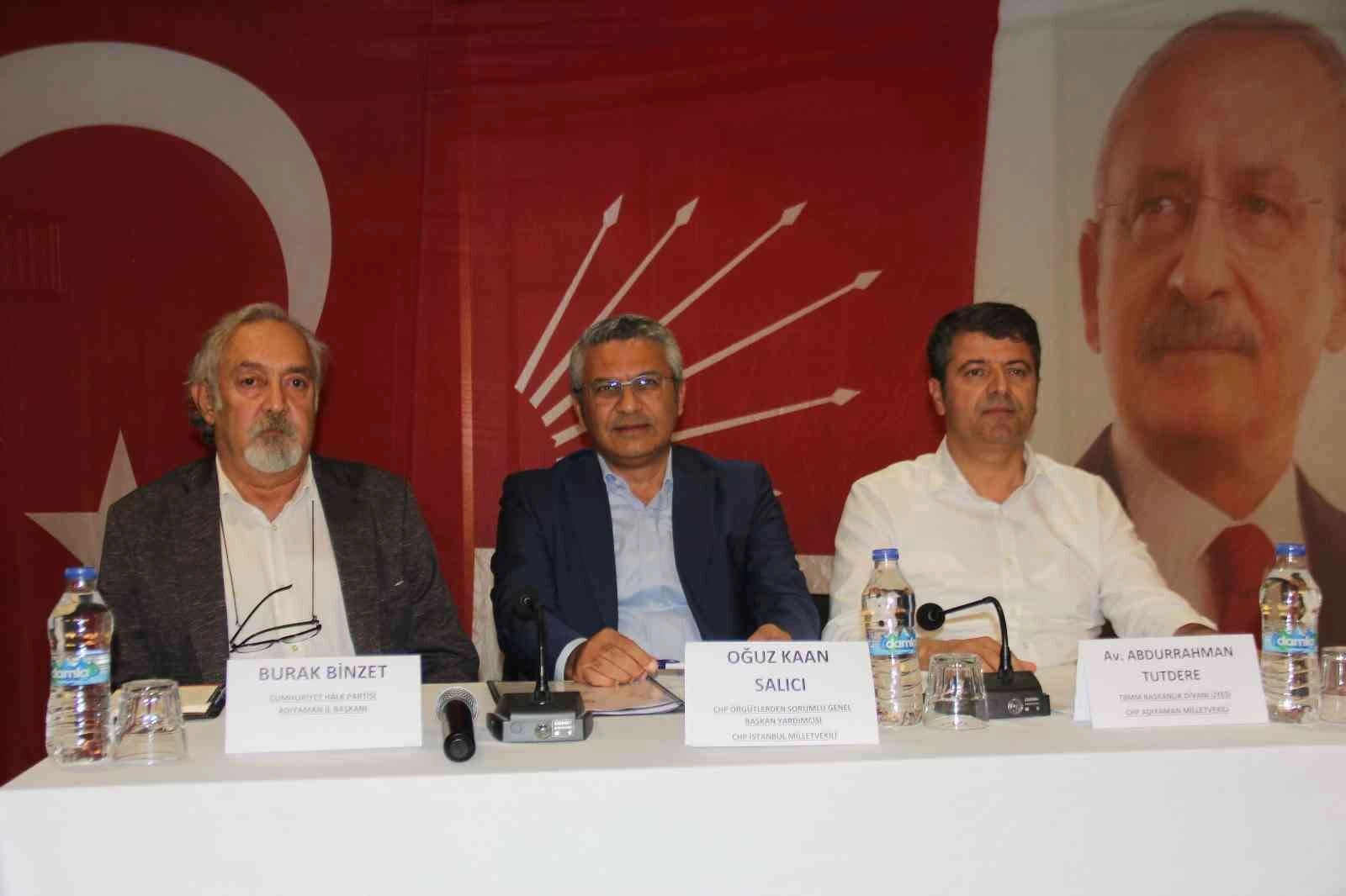 Teşkilatlardan sorumlu CHP Genel Başkan Yardımcısı ve İstanbul Milletvekili Oğuz Kaan Salıcı, Milletvekili Abdurrahman Tutdere ile birlikte Adıyaman’da parti teşkilatıyla bir araya geldi. Belediye başkanları, parti il ve ilçe başkanları, yürütme kurullarının katıldığı toplantının açılışında basın açıklaması yapan Oğuz Kaan Salıcı, iktidarı Adıyaman’da ki sulama barajları üzerinden eleştirdi.