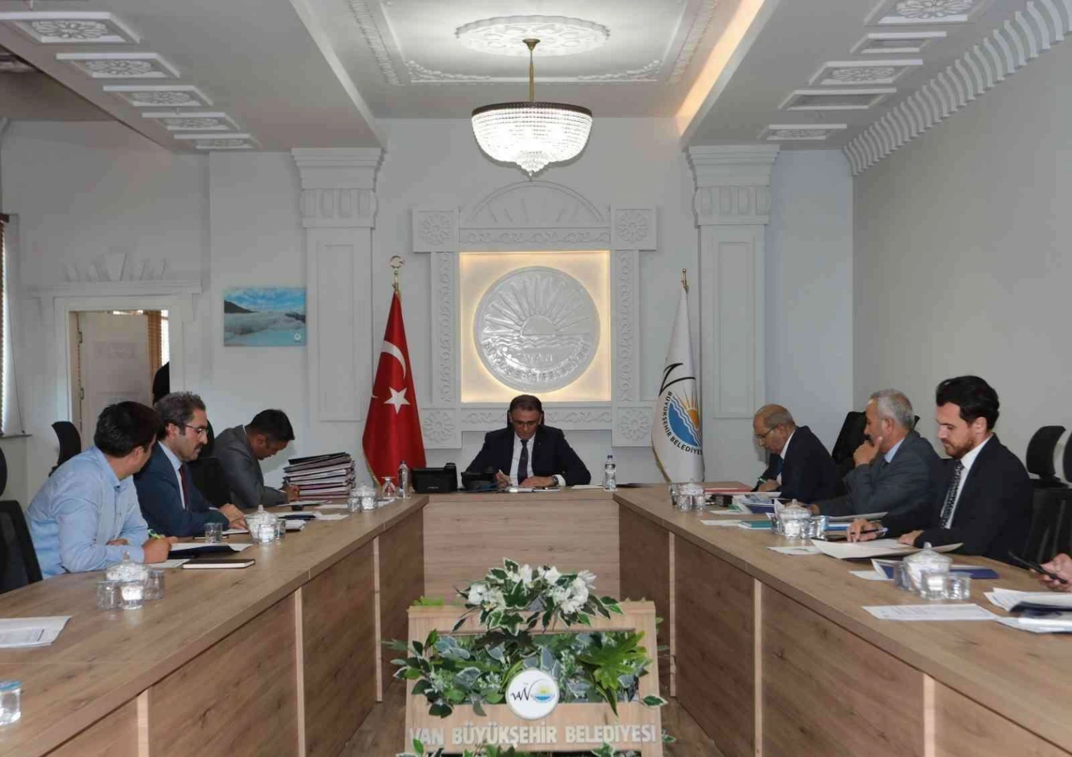 Van Valisi ve Büyükşehir Belediye Başkan Vekili Ozan Balcı başkanlığında Büyükşehir Belediyesi Toplantı Salonu’nda gerçekleştirilen toplantıya Genel Sekreter Mehmet Fatih Çelikel ve meclis üyesi olan ilgili daire başkanları katıldı. Toplantıda gündem maddeleri görüşülerek kararlaştırılan konulardan bazıları; 50 adet belediye tipi, alçak tabanlı, engelli uyumlu otobüsün alınması, Edremit ilçesi tapu ve kadastro hizmet binasının kütüphaneye dönüştürülmesi amacıyla Tapu ve Kadastro Van Bölge Müdürlüğü ile ortak hizmet projesinin gerçekleştirilmesi, özel halk otobüslerine ücretsiz biniş hakkından faydalananlar için mevcut destek miktarı olan 2.000,00 TL’nin UKOME kurul kararı doğrultusunda şehir içi indirimli tarifeye verilecek zam oranına göre yükseltilmesi, Çatak Belediyesi envanterine kayıtlı otobüsün Çatak-Van arasında toplu taşıma hizmetlerinde kullanılmak üzere giderlerinin büyükşehir belediyesince karşılanması, itfaiye ve zabıta personeline maktu fazla çalışma ücretinin tespiti gibi gündem maddeleri konuşuldu.