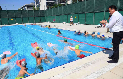 Yaz Spor Okulları çerçevesinde düzenlenen kurslara katılan çocuklar, sıcak yaz günlerini yüzme öğrenerek değerlendiriyor. 7-14
