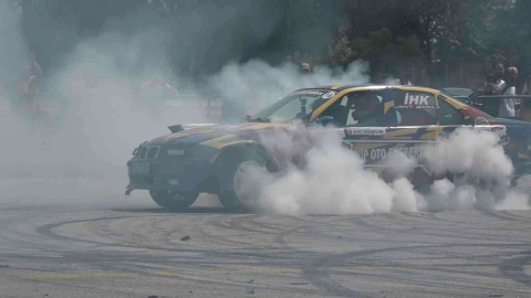 Bursa Yunuseli Havalimanı, hafta sonu modifiye tutkunlarıyla doldu taştı. Drift sporcuları, şov yapıp lastiklerini toplanan kalabalık için yaktı. Yaklaşık 15 bin kişinin doldurduğu alandaki gösteriler, nefesleri kesti. O anlar da dron ile havadan görüntülendi.