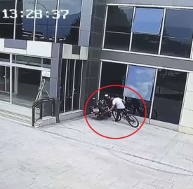 Olay, dün öğle saatlerinde Gürsu ilçesinde meydana geldi. Edinilen bilgiye göre, bisikletli şüpheli şahıs, bir fabrikanın bahçesinde park halinde duran motosikleti gözüne kestirdi. Bir süre çevrede gözetleme yapan şüpheli, motosikletin çantasından hırsızlık yapmaya çalıştığı anda fabrikada bulunan bir kişi onu fark ederek bağırmaya başladı. Bağırma sesiyle birlikte panik yapan şüpheli geldiği bisiklete binerek arkasına bile bakmadan kaçtı. O anlar güvenlik kamerasına yansıdı.