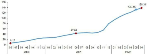 Türkiye İstatistik Kurumu (TÜİK) Yurt İçi Üretici Fiyat Endeksi’ni (Yİ-ÜFE) yayınladı. 2022 yılı Haziran ayında bir önceki aya göre yüzde 6,77, bir önceki yılın Aralık ayına göre yüzde 61,68, bir önceki yılın aynı ayına göre yüzde 138,31 ve on iki aylık ortalamalara göre yüzde 88,77 artış gösterdi.