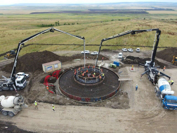 100’den fazla inşaat makinesinin gönderildiği inşa sahasında 250’den fazla işçi ve mühendis görev yapıyor. Rüzgar türbinlerinin temelleri için yerinde dökme kazık ve betonarme demiri dikme çalışmaları devam ediyor. İşçiler, ayrıca rüzgar türbini temellerine ve şebeke trafosuna vinç platformları ve ulaşım yolları inşa ediyor. Sahada saatte 230 metreküp hazır beton üretebilen iki beton karıştırma tesisi faaliyet gösteriyor.