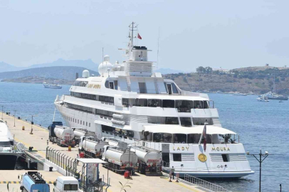 Muğla’nın Bodrum ilçesine gelen mega yat ‘Lady Moura’ 600 ton yakıt aldı