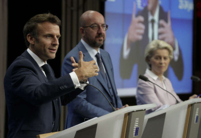 Belçika’nın başkenti Brüksel’de düzenlenen AB Liderler Zirvesi’nde ilk gün sona erdi. AB Konseyi Başkanı Charles Michel, AB Komisyonu Başkanı Ursula von der Leyen ve AB Dönem Başkanı sıfatıyla Fransa Cumhurbaşkanı Emmanuel Macron ortak basın toplantısı düzenledi.